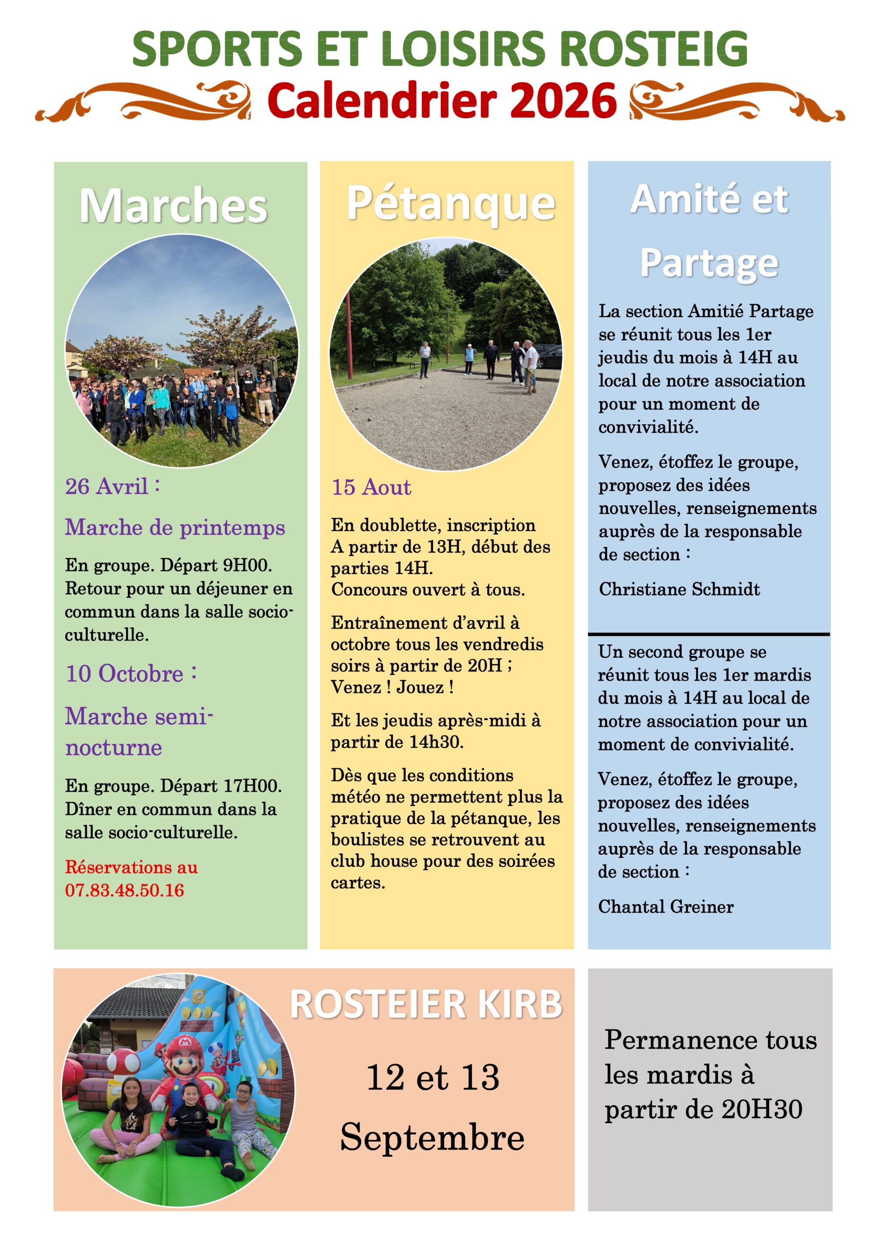 Vous pouvez consulter la page facebook sur le lien suivant : Sports et Loisirs Rosteig